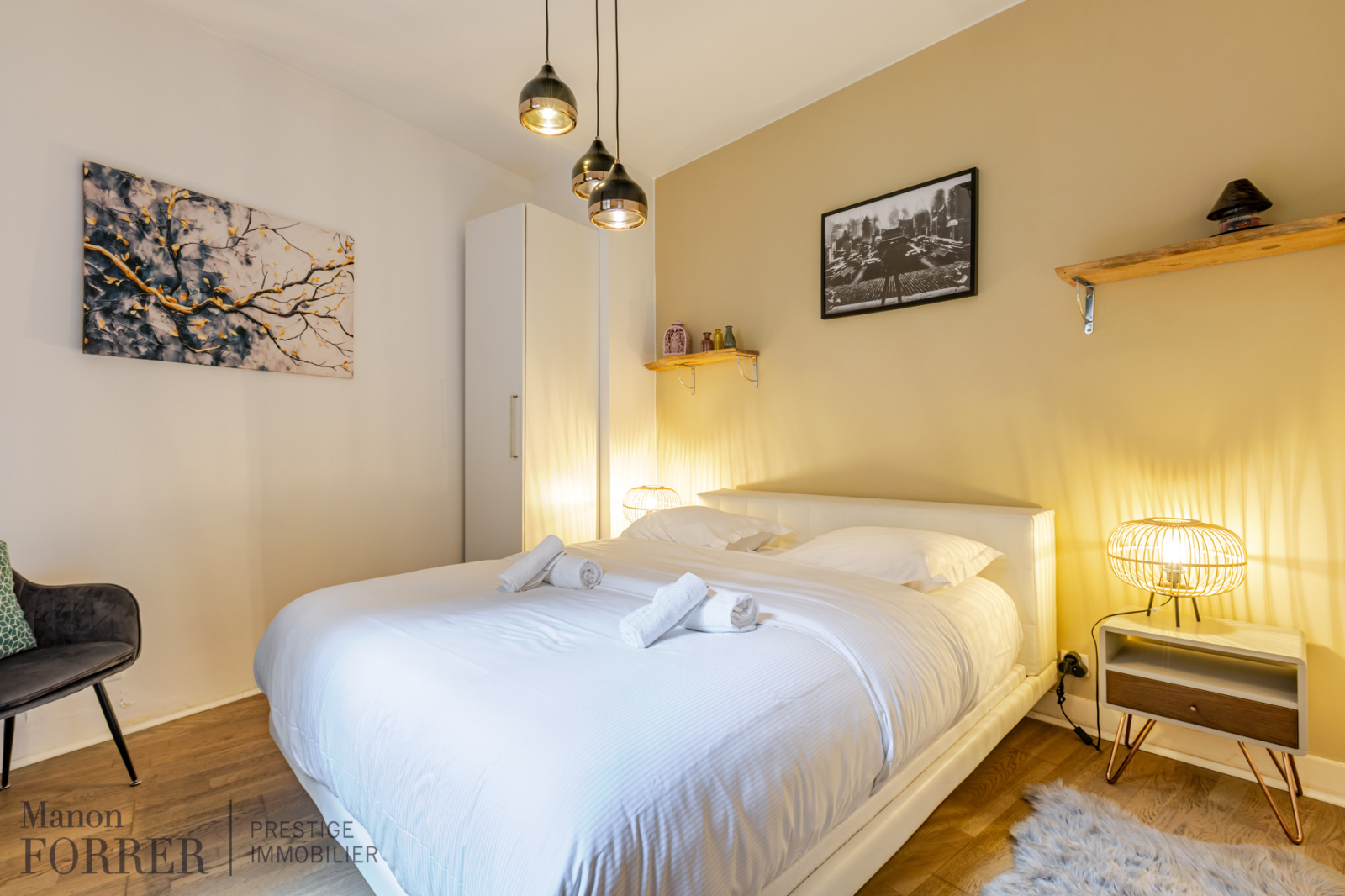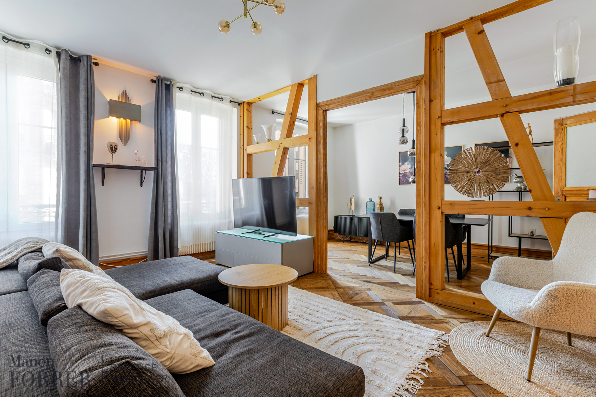 Situé en rez-de-chaussée surélevé au sein d’une petite copropriété au calme, ce bien se distingue par un agencement optimisé et par la qualité des matériaux qui le composent, le parquet et les poutres apparentes apportant un charme authentique à l’ensemble.