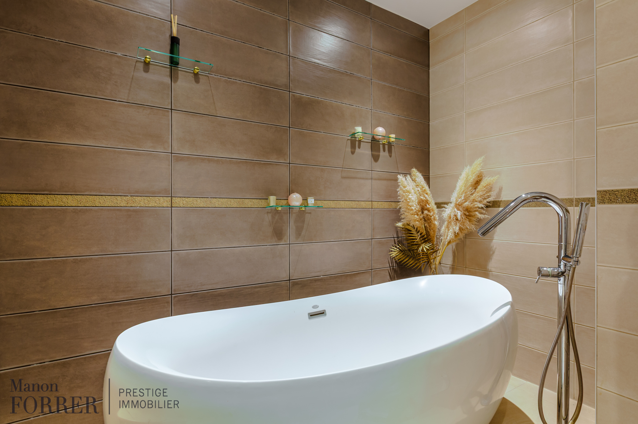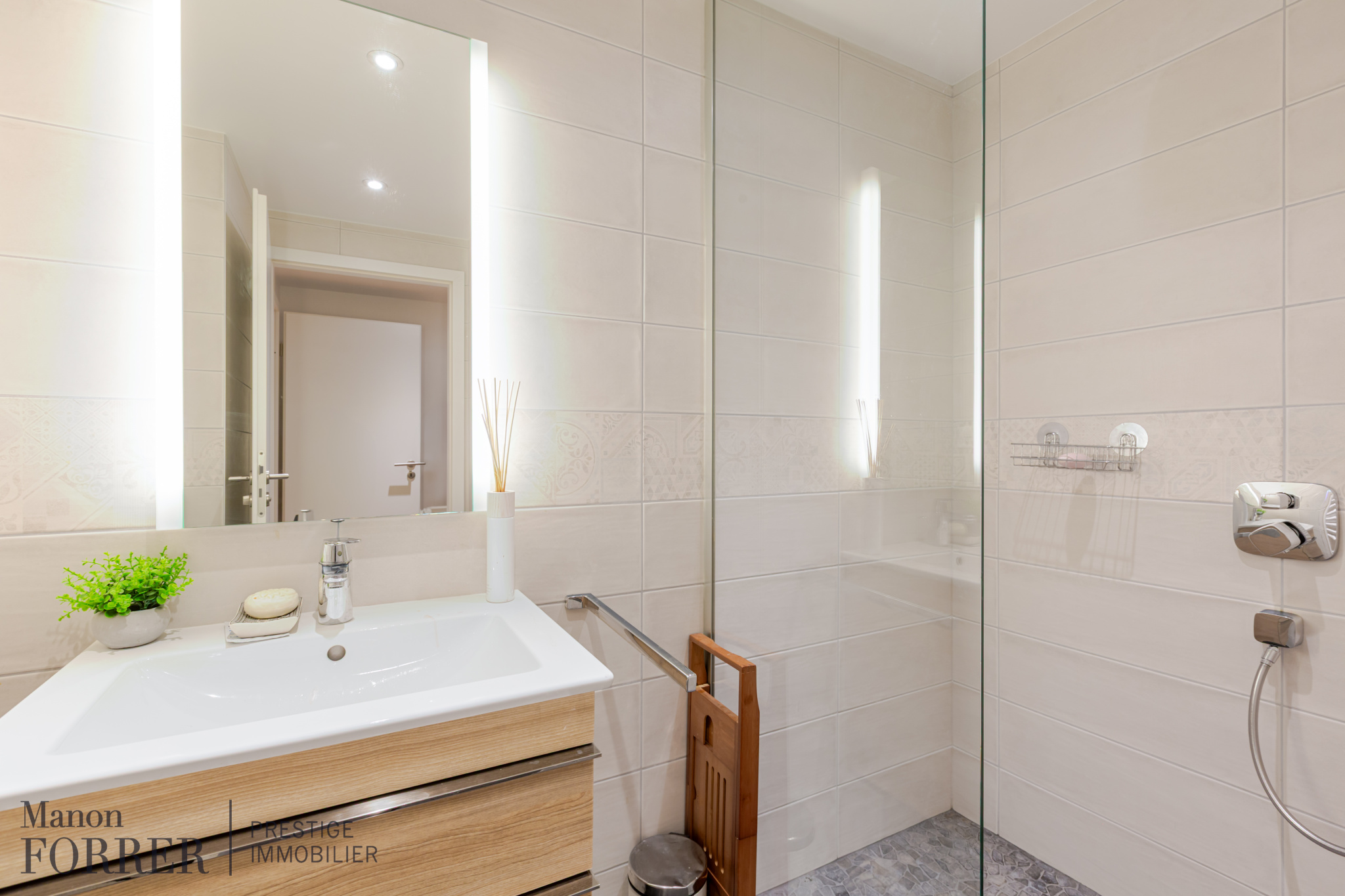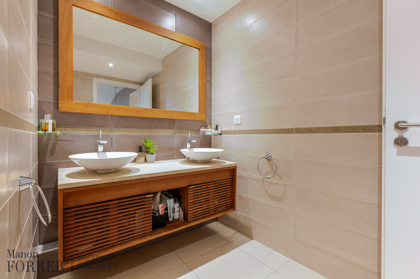 À l’étage, climatisé, ce bien dispose de 3 belles chambres dont une parentale avec dressing, une salle de bain comprenant baignoire îlot, douche italienne, double vasque et WC, d’une grande salle d’eau complémentaire avec douche italienne et vasque, d’un WC indépendant et d’un grand débarras.