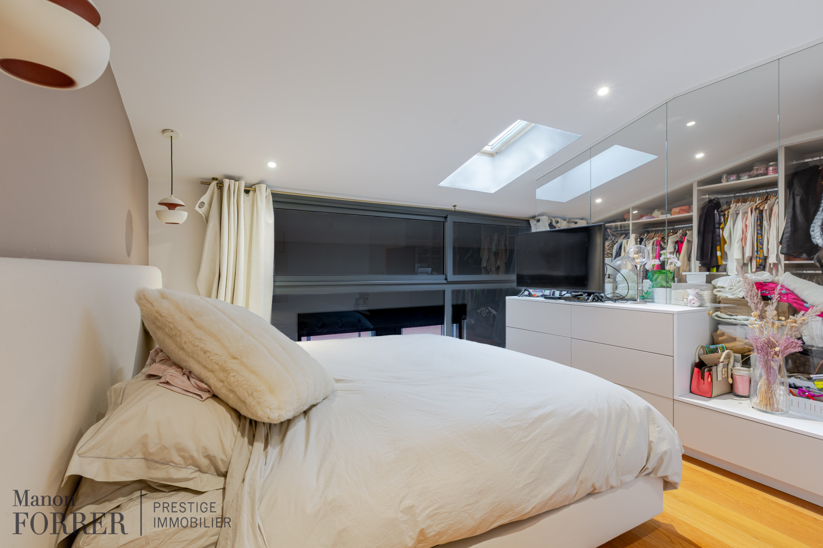 Ce bien a bénéficié d’une rénovation contemporaine de qualité et dispose de parquet massif, climatisation et de beaux volumes.
