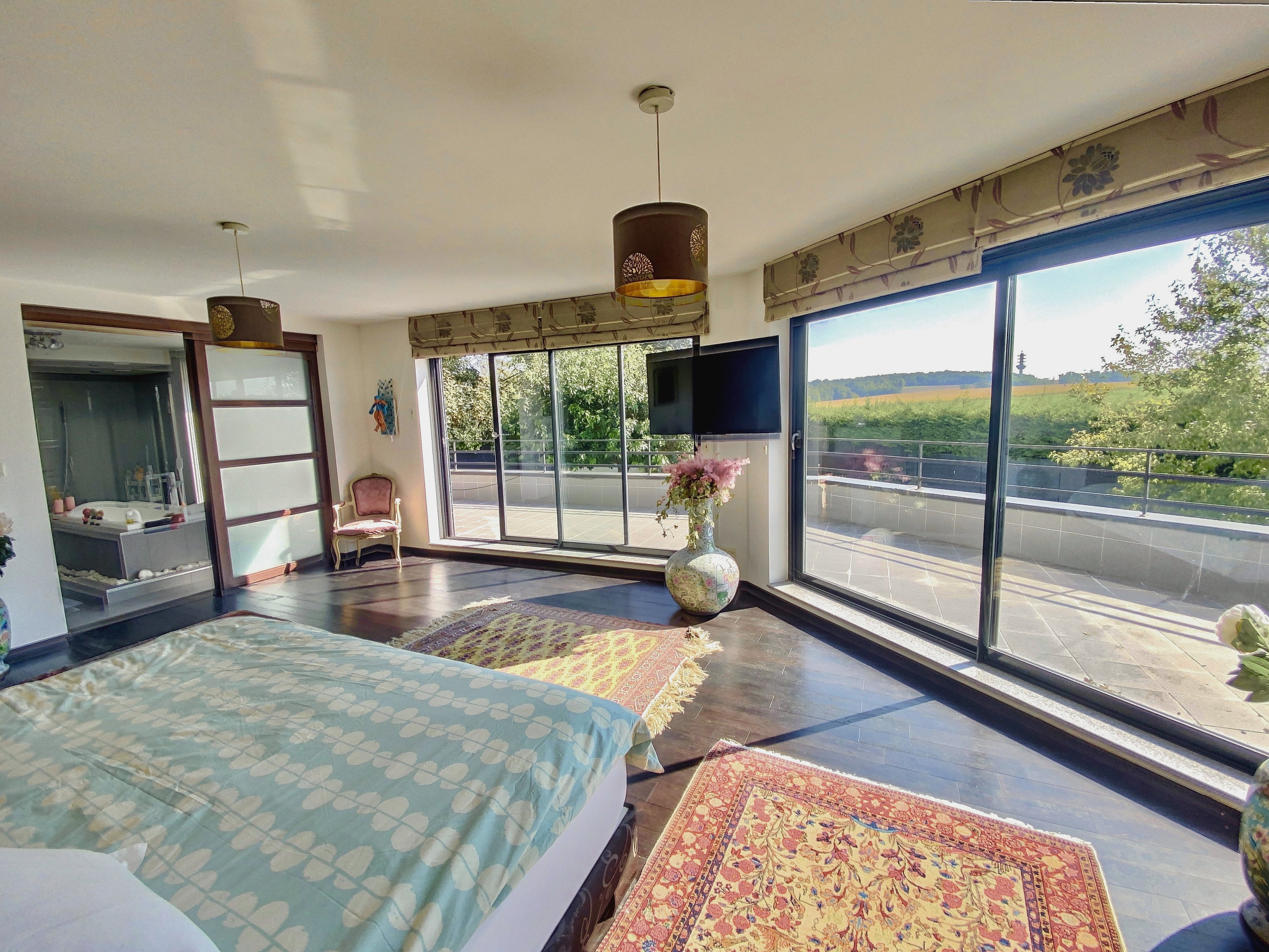 L’espace de vie comprend un grand salon et une salle à manger ouverts, offrant une belle luminosité et un accès direct à une terrasse orientée plein sud, avec vue dégagée sur le jardin et la piscine chauffée (8x4). La partie nuit se compose de plusieurs chambres, dont deux suites avec dressings, ainsi que de deux salles de bains et deux WC indépendants.